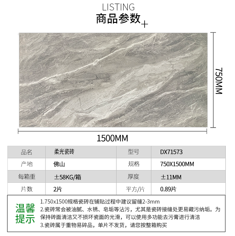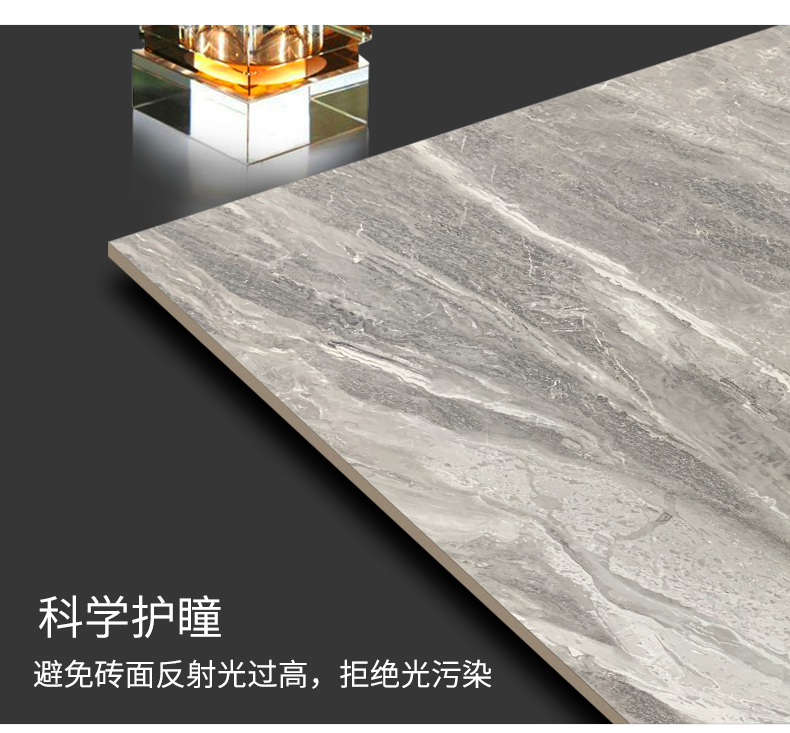 柔光瓷磚是磚面反射介于強光與弱光之間的一類瓷磚,其結合亮光類瓷磚的高調明艷裝飾和啞光類瓷磚的低調內斂搭配效果,通過動態柔光蠟拋技術,降低產品反光率,從而達到人體舒適的視覺感受以及無光污染的空間裝飾效果。優點:1.視覺舒適,無光污染 2.堅固耐磨,不易刮花.