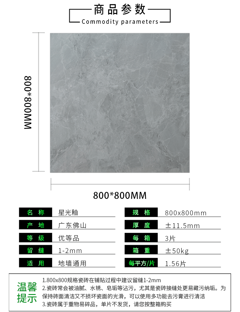 星光釉 【產品介紹】從天然礦石中提取的閃光干粒,加入高耐磨防滑釉料和多種特殊晶體釉,使瓷磚表面隨光線變化,散發(fā)如星空細碎微光。星光釉系列經過30000噸超大壓機無摸壓制成型,胚體受力更均勻,具有更高平整度、超強抗沖擊、韌性與硬度。