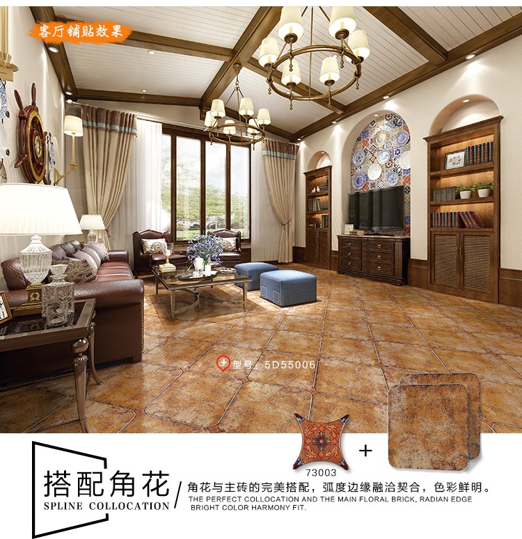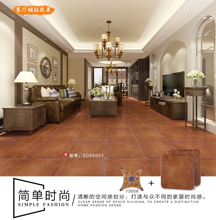 金曼古仿古地磚,采用國際先進(jìn)的超大型壓機(jī)自動(dòng)成型,經(jīng)世界一流的滾筒印花和高溫煅燒而成,通過仿石、仿巖、仿木、仿布、仿金屬等多種表現(xiàn)方式,產(chǎn)品花色圖案新穎時(shí)尚,領(lǐng)先國際潮流,具有超耐磨、防滑、防污等高性能指標(biāo)。