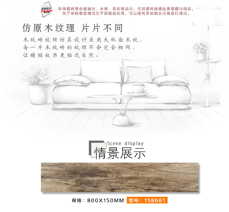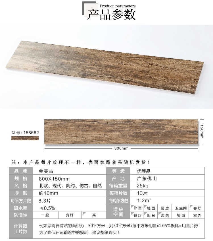 金曼古木紋磚,是一種表面呈現木紋裝飾圖案的環保建材.紋路逼真、自然樸實、沒有木地板褪色、不耐磨等缺點;曼古陶瓷木紋磚系列線條明快,圖案清晰為特色。本身具有阻燃,不腐蝕的特點,綠色、環保型建材;產品使用壽命長,耐磨,無需像木制產品那樣周期性地打蠟保養等.