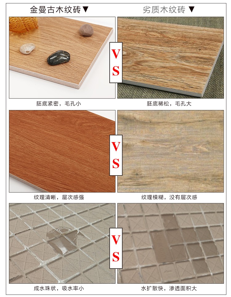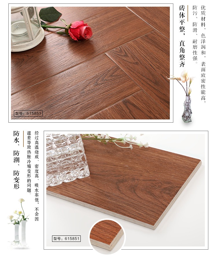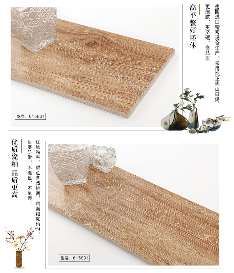 金曼古木紋磚,是一種表面呈現(xiàn)木紋裝飾圖案的環(huán)保建材.紋路逼真、自然樸實(shí)、沒有木地板褪色、不耐磨等缺點(diǎn);曼古陶瓷木紋磚系列線條明快,圖案清晰為特色。本身具有阻燃,不腐蝕的特點(diǎn),綠色、環(huán)保型建材;產(chǎn)品使用壽命長(zhǎng),耐磨,無需像木制產(chǎn)品那樣周期性地打蠟保養(yǎng)等.
