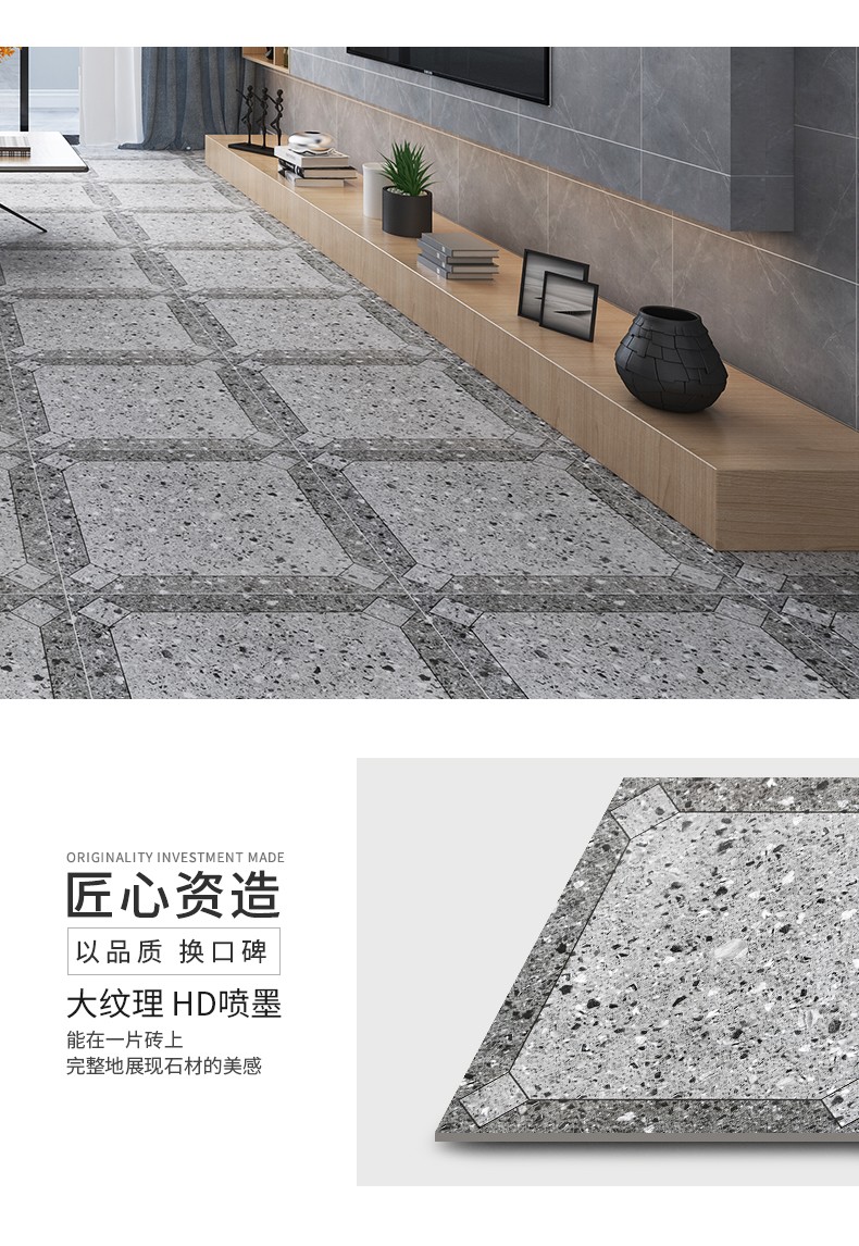 金曼古仿古地磚,采用國際先進的超大型壓機自動成型,經世界一流的滾筒印花和高溫煅燒而成,通過仿石、仿巖、仿木、仿布、仿金屬等多種表現方式,產品花色圖案新穎時尚,領先國際潮流,具有超耐磨、防滑、防污等高性能指標。