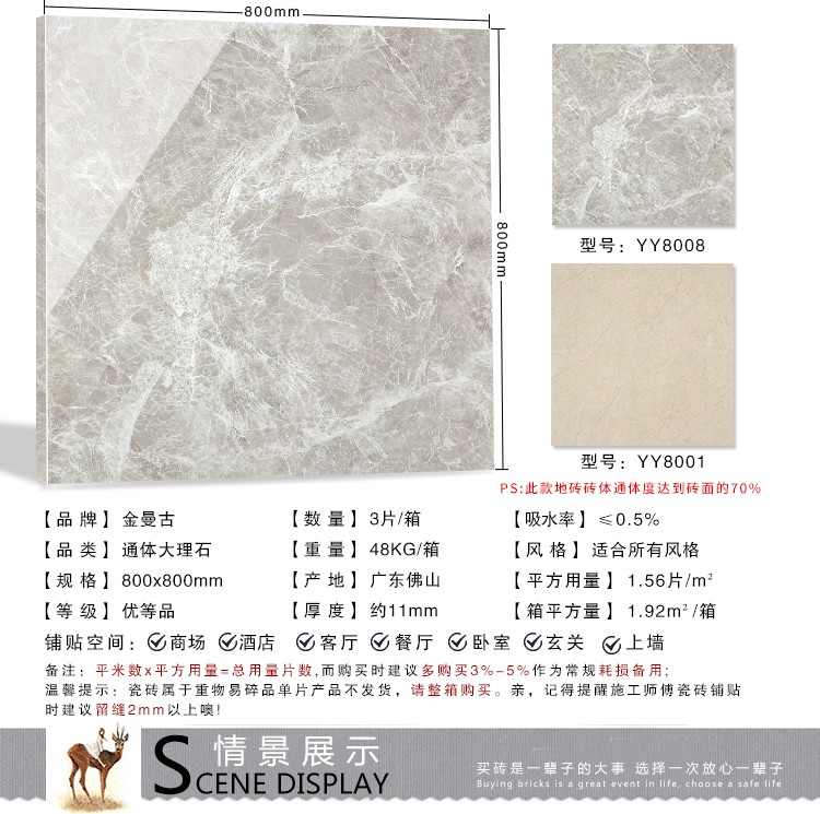通體大理石瓷磚,即是大理石瓷磚的一種,亦是一種拋釉磚坯經過拋光工序之后形成的瓷磚,只不過通體大理石瓷磚更加注重對瓷磚磚坯的塑造,其原本原理也是在大理石瓷磚基礎上,加類似于瓷磚表面紋理的磚坯組合而成的瓷磚產品。另外,現階段各種傳統單純釉面的大理石瓷磚產品已經開始泛濫,而通體大理石瓷磚的出現無疑又是給已經乏力的大理石瓷磚市場注入新的活力.應用廣,市場大.