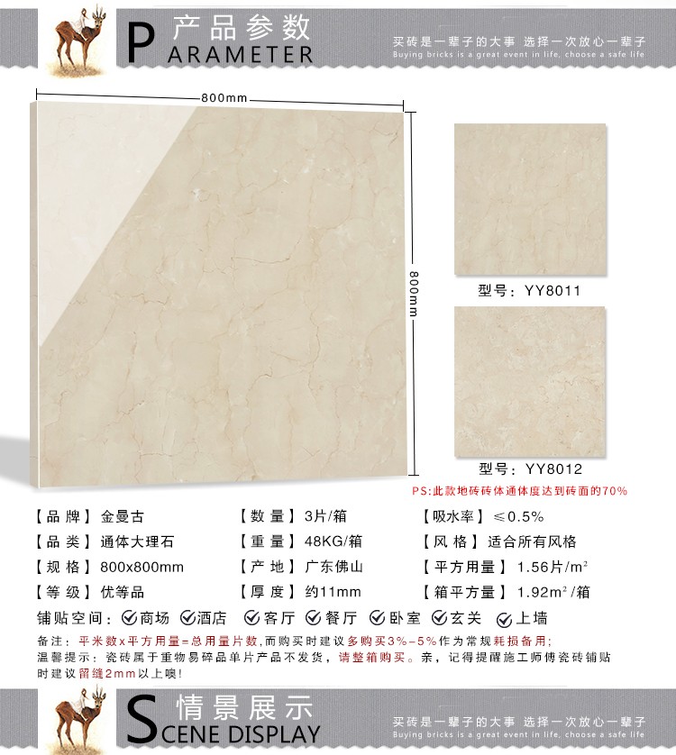 通體大理石瓷磚,即是大理石瓷磚的一種,亦是一種拋釉磚坯經過拋光工序之后形成的瓷磚,只不過通體大理石瓷磚更加注重對瓷磚磚坯的塑造,其原本原理也是在大理石瓷磚基礎上,加類似于瓷磚表面紋理的磚坯組合而成的瓷磚產品。另外,現階段各種傳統單純釉面的大理石瓷磚產品已經開始泛濫,而通體大理石瓷磚的出現無疑又是給已經乏力的大理石瓷磚市場注入新的活力.應用廣,市場大.
