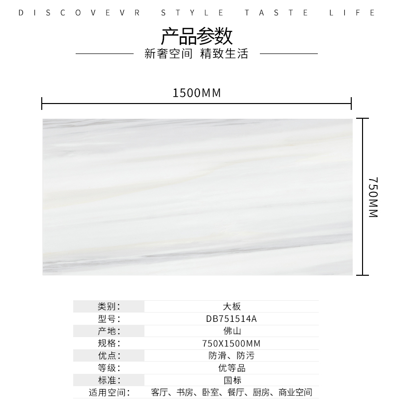 大規(guī)格瓷磚(DB751514A)-工程瓷磚 金曼古大規(guī)格瓷磚引進世界最先進的超大型壓機自動壓制而成,具有超大規(guī)格,超高硬度,超高致密度,超長時間煅燒,超低吸水率,超高光澤度。其磚面紋理流暢自然,效果逼真,適用于大型工程外墻干掛和酒店、商場、各辦公樓大堂等地面裝修