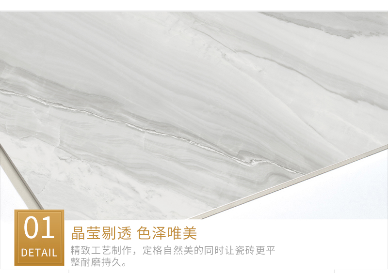 4、磚體薄、重量輕:如果采用天然石材會因強度低,加工厚度較大,笨重,增加了樓層建筑物的負荷重量,形成潛在威脅,成本上升,并且增加了運輸、鋪貼等困難。故金曼古瓷磚是你最佳選擇