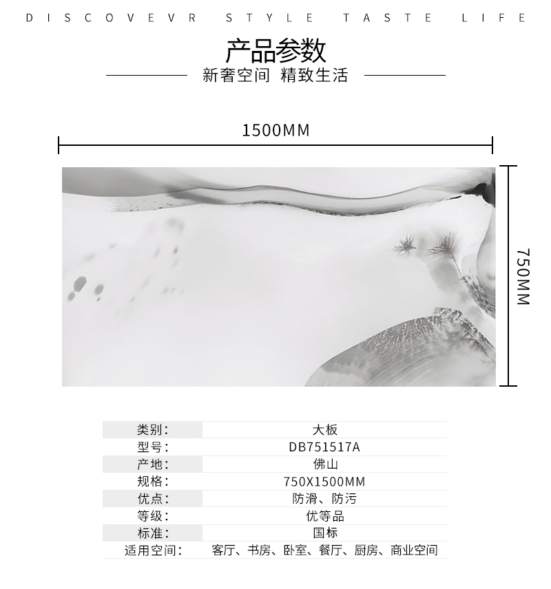 大規格瓷磚(DB751517A)-工程瓷磚 金曼古大規格瓷磚引進世界最先進的超大型壓機自動壓制而成,具有超大規格,超高硬度,超高致密度,超長時間煅燒,超低吸水率,超高光澤度。其磚面紋理流暢自然,效果逼真,適用于大型工程外墻干掛和酒店、商場、各辦公樓大堂等地面裝修